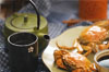 |青背白肚,金爪黃毛,八足鼎立,雙螯騰空,臍背隆起,威風凜凜